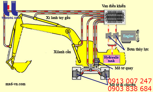 Hệ thống thuỷ lực máy xúc áp dụng chủ yếu cho những máy xúc, máy đào với các chi tiết chính như thùng dầu thuỷ lực với kích cỡ dựa trên công suất máy xúc, bơm thuỷ lực, cụm van phân phối chính và các van điều khiển, motor quay toa, xi lanh thuỷ lực, xy lanh khí nén, các loại đường ống dẫn dầu, bộ lọc dầu thuỷ lực, và có thể kèm theo két làm mát dầu thuỷ lực,… Bài viết sau sẽ phổ biến đến bạn cách hoạt động của một hệ thống thủy lực trong các loại máy xúc hiện nay.